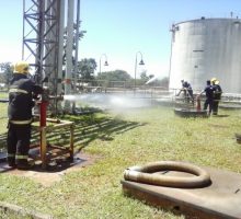 Bombeiros Militares de Senador Canedo combatem principio de incêndio em empresa de combustíveis