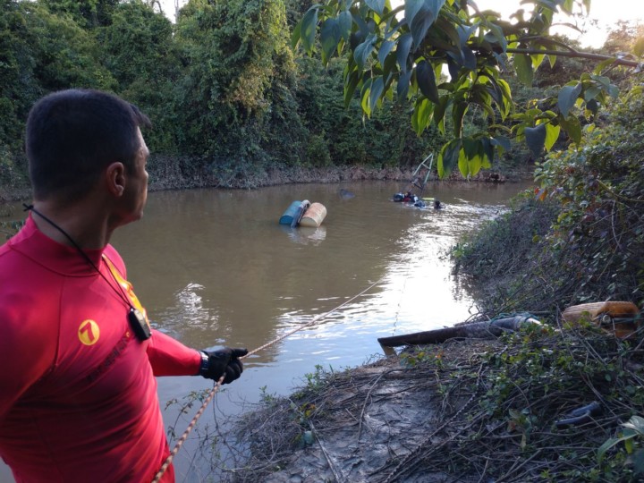 Bombeiros Militares de Silvânia atuam em operação para reflutuação de uma draga