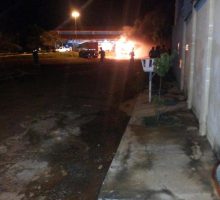 Bombeiros Militares de Uruaçu atuam em ocorrência de incêndio em ônibus