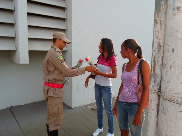 Em homenagem ao Dia Internacional das Mulheres, o 1° PBM Uruaçu, em parceria com a PM, distribuiu rosas para mulheres no centro da cidade. Para cada mulher foi entregue uma rosa, representando a delicadeza com que elas devem ser tratadas, sem deixar de reconhecer sua luta pela igualdade, conciliando o trabalho com os compromissos diários a que se dedicam, seja como mãe, profissional, dona de casa, estudante ou esposa. Confira fotos: