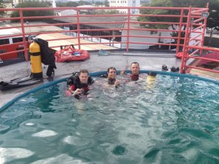 A equipe náutica do 1º BBM participou, na quarta-feira, 18, de uma instrução no Tanque de Mergulho do quartel. Entre os assuntos abordados, nós e amarrações em ambientes subaquáticos e medição do tempo de fundo dos mergulhadores em condições de esforço. Para essa atividade, foram conduzidas anilhas com 25 quilos, simulando o carregamento de “poitas” na profundidade máxima de 10 metros com passagem por obstáculos. O trabalho é de suma importância para a constante qualificação dos mergulhadores, bem como o conhecimento mais aprofundado no que tange ao tempo de consumo de ar de cada militar envolvido nas atividades náuticas do batalhão.