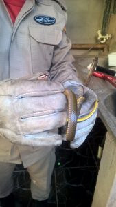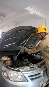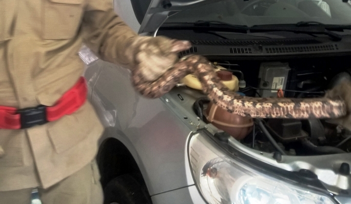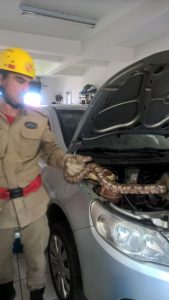 Bombeiros Militares do 8º BBM resgatam jiboia que estava escondida em motor de carro