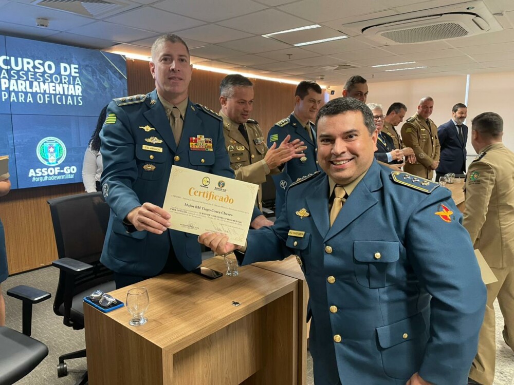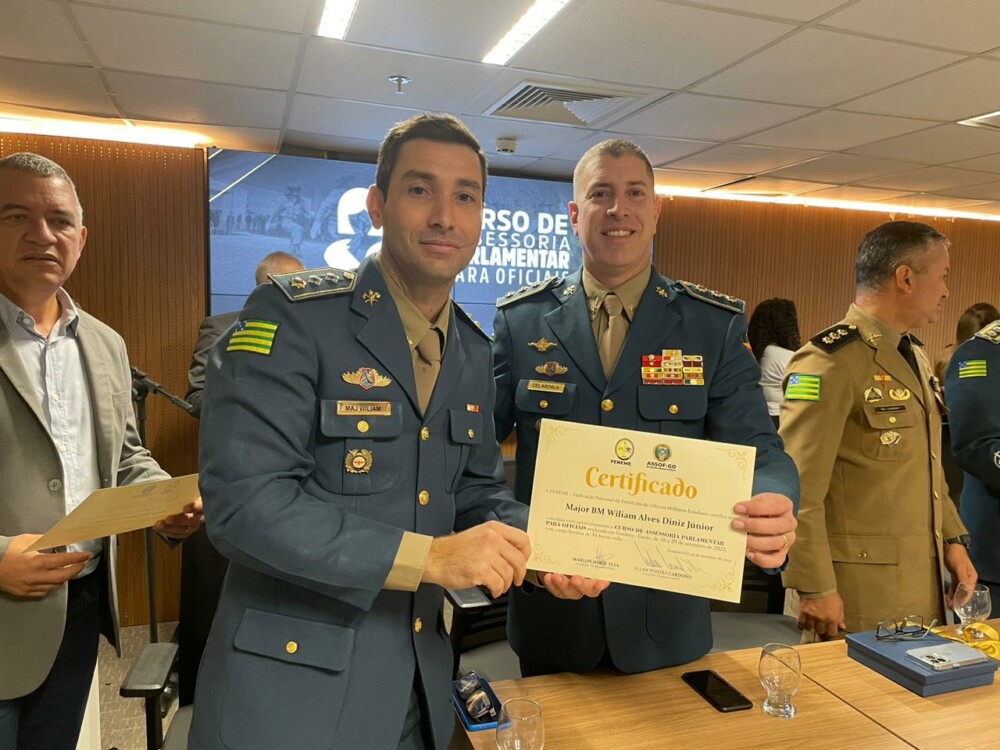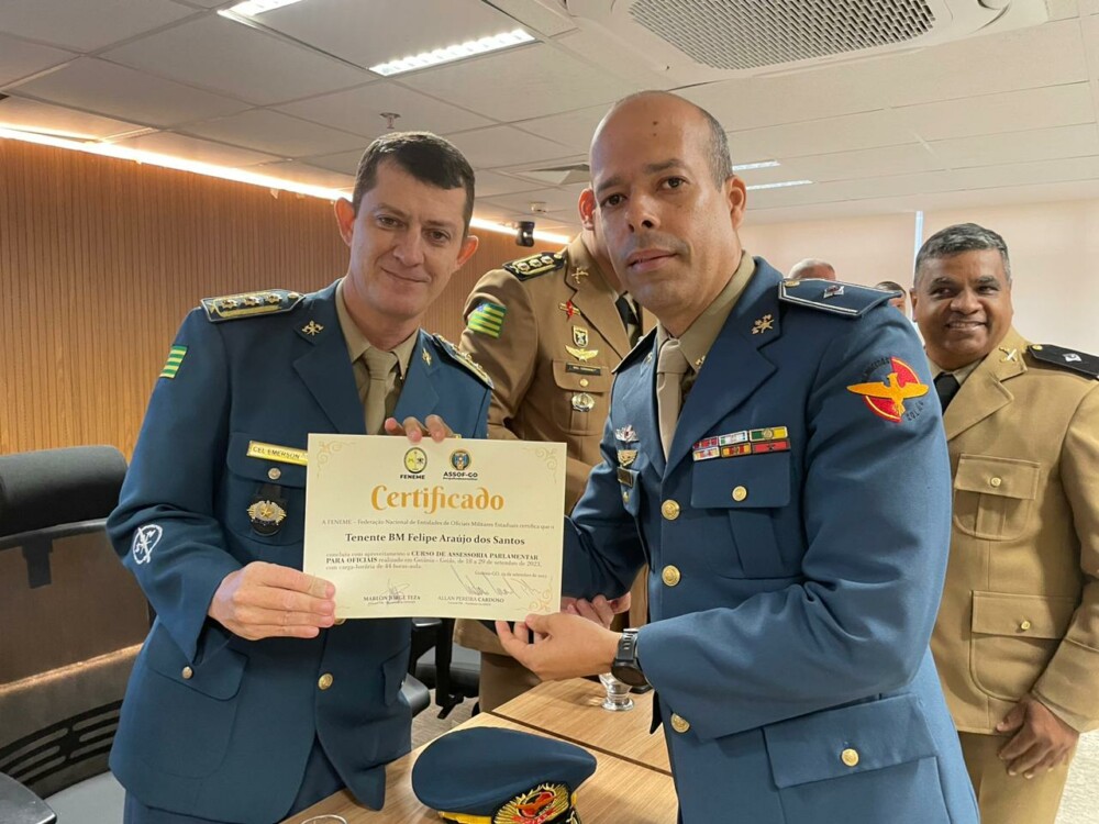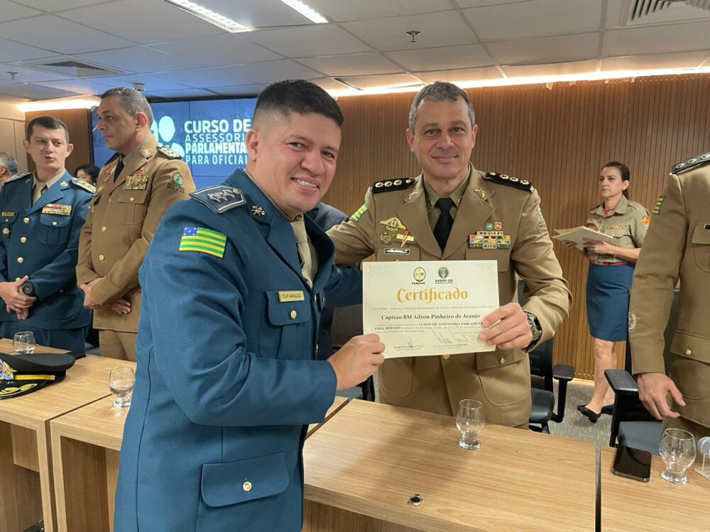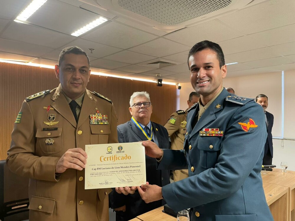 Foi realizada nesta sexta-feira, 29, a solenidade de conclusão do Curso de Assessoria Parlamentar, promovido pela Federação Nacional de Entidades de Oficiais Militares Estaduais (FENEME) em parceria com a Associação dos Oficiais da Polícia e do Corpo de Bombeiros Militares do Estado de Goiás (ASSOF-GO). Oficias do CBMGO participaram do curso.