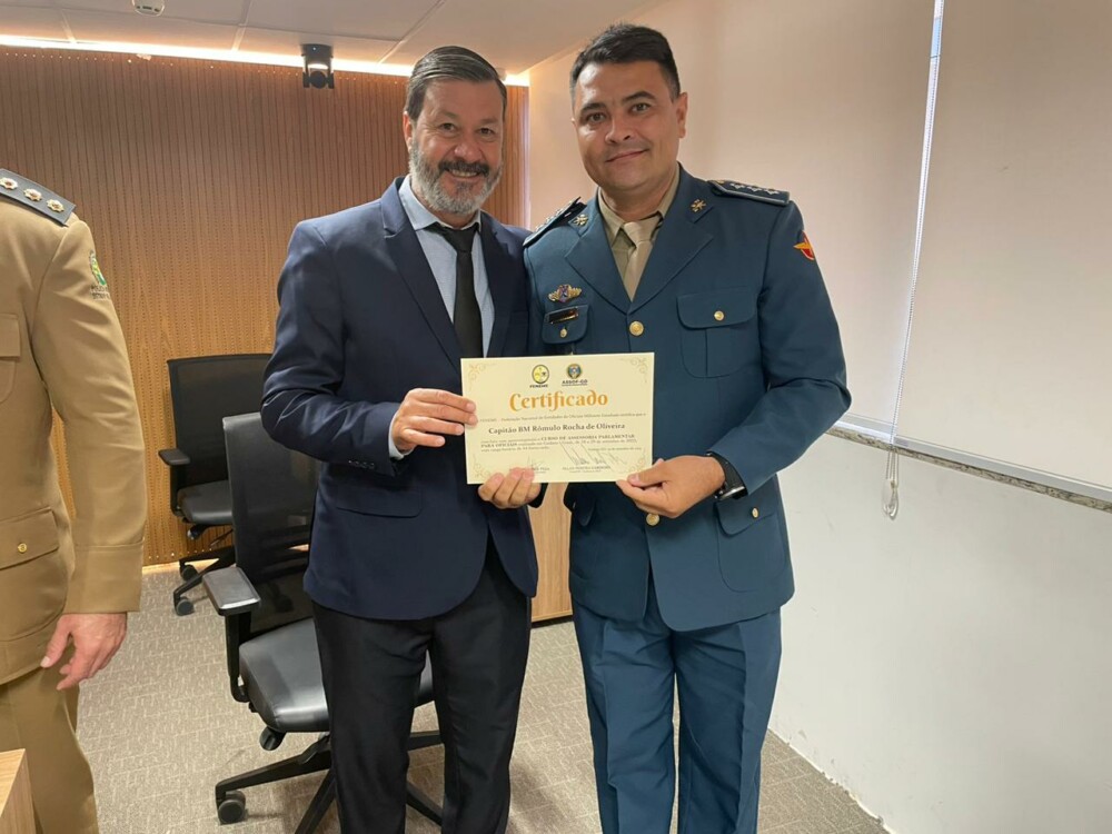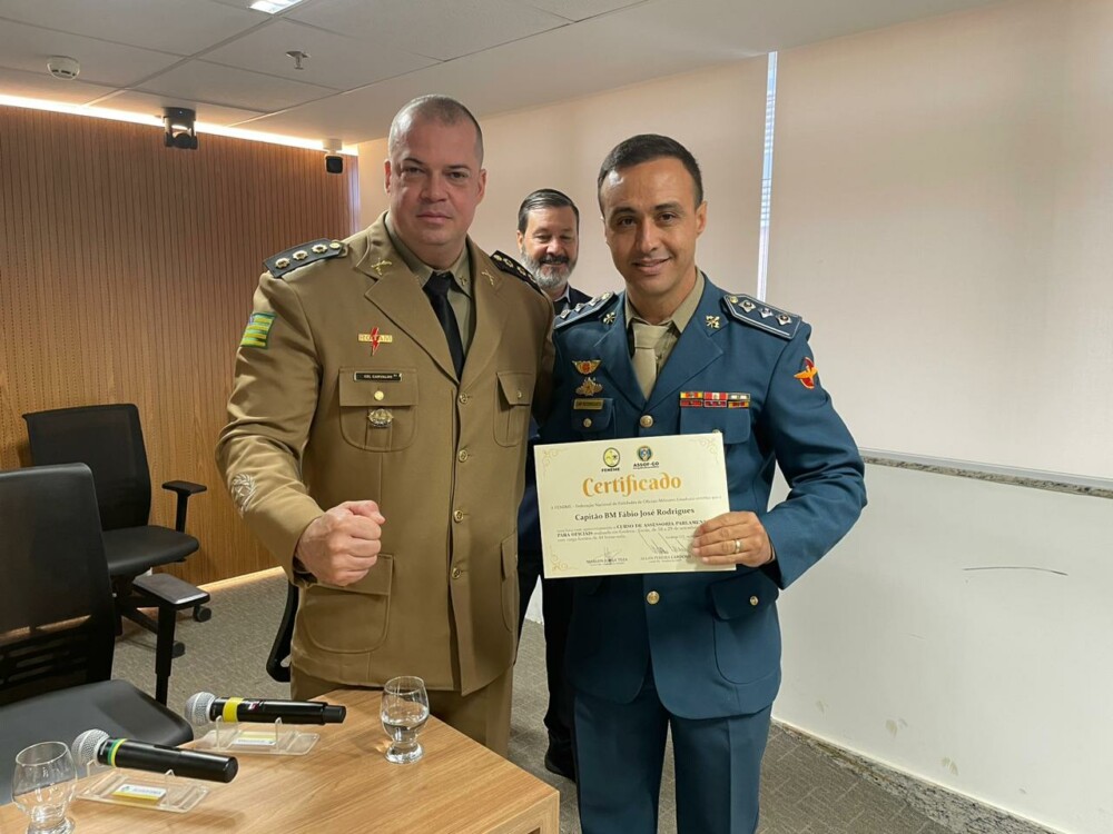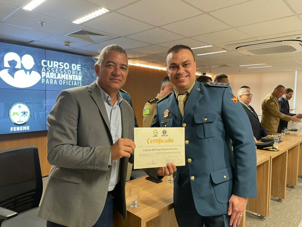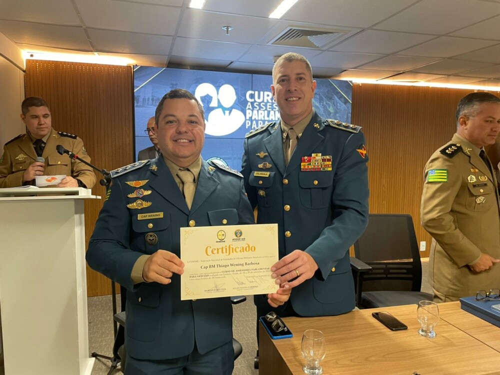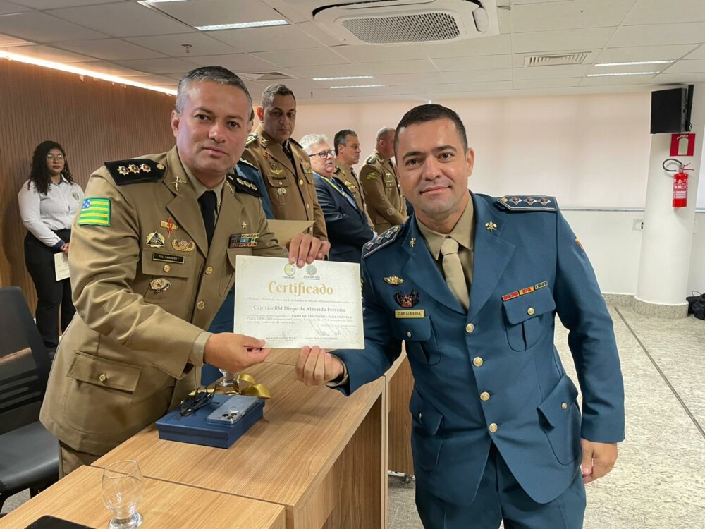 Foi realizada nesta sexta-feira, 29, a solenidade de conclusão do Curso de Assessoria Parlamentar, promovido pela Federação Nacional de Entidades de Oficiais Militares Estaduais (FENEME) em parceria com a Associação dos Oficiais da Polícia e do Corpo de Bombeiros Militares do Estado de Goiás (ASSOF-GO). Oficias do CBMGO participaram do curso.