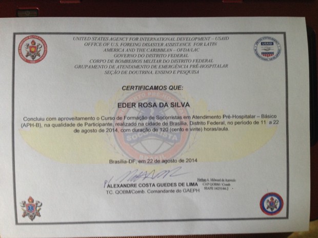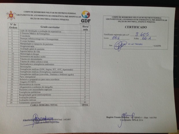Bombeiros Militares do Corpo de Bombeiros Militar do Estado de Goiás participaram do dia 11 a 22 de agosto de curso no Grupamento de atendimento Pré-Hospitalar no Distrito Federal pela Força Nacional com a disciplina Tratamento de Ferimentos em Tecidos Moles e de Extremidades, Parto Emergencial e Método START entre outras. O Curso teve duração de 120 horas aula.Confira fotos: