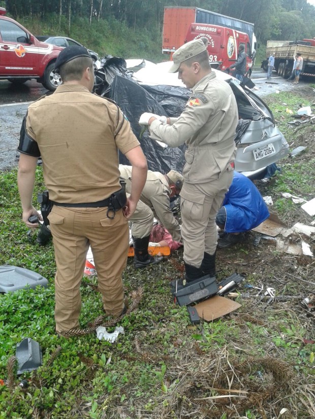Bombeiros Militares do Estado de Goiás realizam atendimento em vítimas de acidente na BR-476 em Santa Catarina