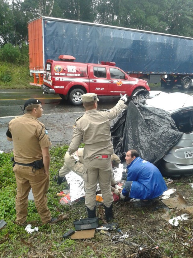 No local, os bombeiros militares de Goiás verificaram que haviam quatro vítimas e iniciaram o atendimento de primeiros socorros até a chegada dos Bombeiros do Paraná.