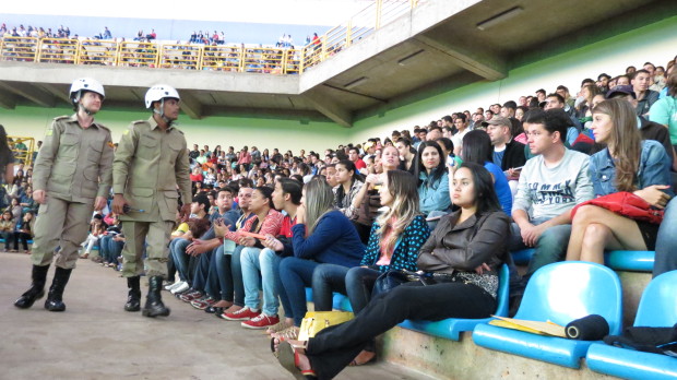 O Corpo de Bombeiros Militar do Estado de Goiás (CBMGO) realizou trabalho preventivo durante cerimônia do programa Bolsa Universitária. O evento, que reuniu cerca de 12 mil pessoas, foi realizado na manhã desta quarta-feira, dia 25, no Goiânia Arena. O governador Marconi Perillo anunciou a inclusão de 10 mil bolsistas no programa. Os novos beneficiados pelo Programa Bolsa Universitária da Organização das Voluntárias de Goiás (OVG) assinaram Termo de Compromisso na reunião de inclusão. O CBMGO montou um posto de comando no evento e espalhou duplas de socorristas pelas arquibancadas do Goiânia Arena visando o pronto-atendimento para os casos de urgência e emergência.