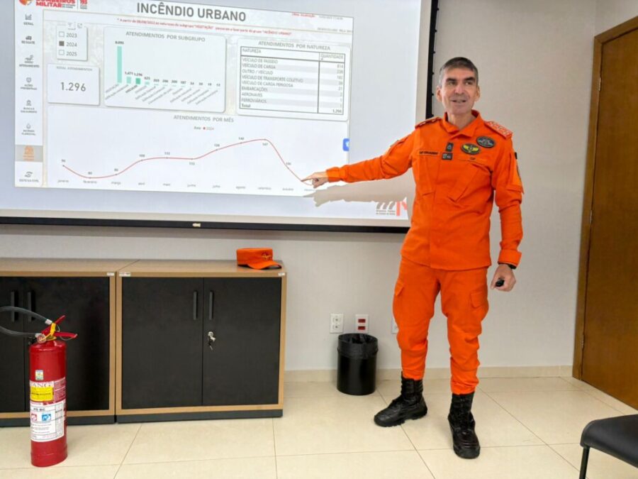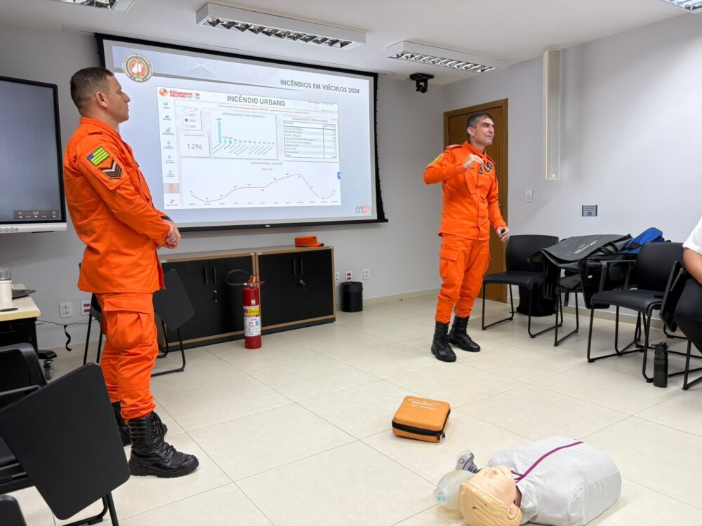 Bombeiros militares lotados na Coordenadoria de Segurança Institucional e Inteligência do MPGO, realizaram nos dias 16 e 23 de março, palestras referentes à Primeiros Socorros, Combate a Incêndios e Condução de veículos sob condições de fumaça, para os motoristas terceirizados do Ministério Público do Estado de Goiás.