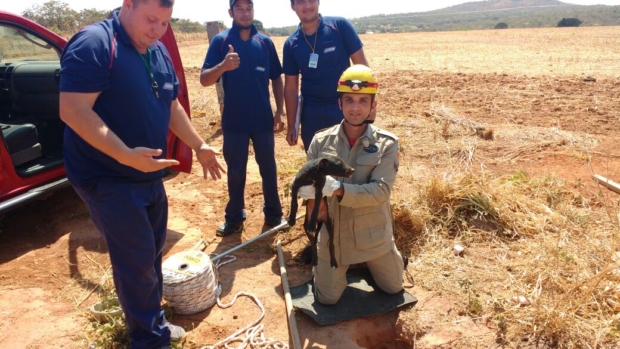 Bombeiros Militares resgatam cachorro em buraco na cidade de Ipameri