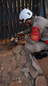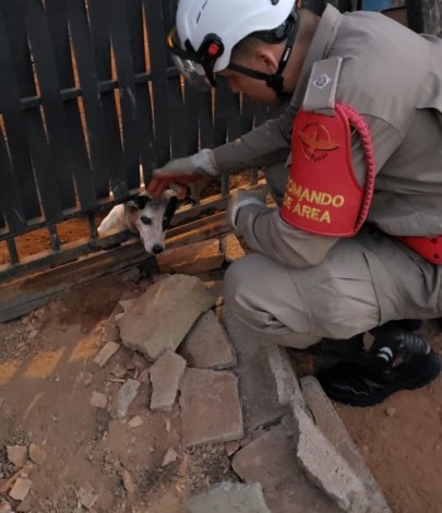 Bombeiros do 2º Batalhão Bombeiro Militar, de Goiânia, resgataram na tarde deste domingo um cachorro preso a uma grade de portão. Segundo testemunhas, o animal estava naquela situação há mais de quatro horas. Após tentativas sem sucesso dos moradores, eles acionaram o @cbmgo pelo telefone de emergência 193. A equipe do Corpo de Bombeiros conseguiu retirar o animal do local. O cão estava sem ferimentos e foi devolvido aos seus donos. Os bombeiros utilizaram o desencarcerador para realizar a expansão do portão e liberar o animal. Participaram da ocorrência o Tenente Alisson, Cadete Ávila, Cabo Thiago Santana e Soldado Fernando.