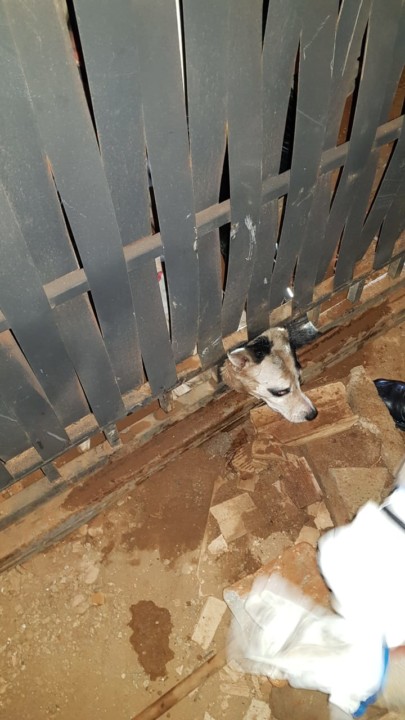 Bombeiros Militares resgatam cão que ficou preso em grade de portão em Goiânia