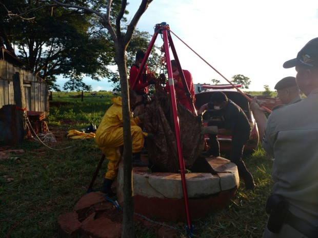 A guarnição náutica do 2º Comando Regional Bombeiro Militar, formada por militares de Jataí e Santa Helena, e a equipe de Busca, Resgate e Salvamento com Cães do 1º Batalhão Bombeiro Militar, de Goiânia, resgataram no domingo, 7, o corpo de um homem em um poço em Lagoa Santa.