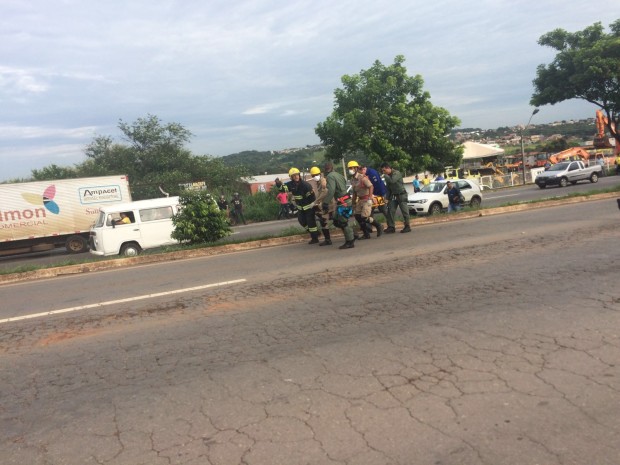 Bombeiros Militares resgatam vítima de grave acidente entre micro-ônibus e moto na Perimetral Norte