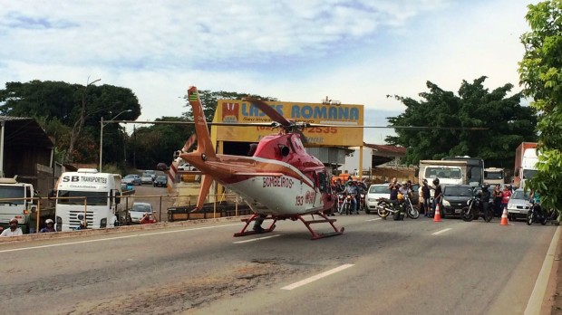 A moto era pilotada por uma mulher de 32 anos que teve parte do membro inferior esmagado. Ela estava consciente, mas apresentava múltiplas fraturas. Pela gravidade de seu estado, foi acionado o Helicóptero Bombeiro 01 que, após os procedimentos de contenção da hemorragia e imobilização, a transportou com vida para o Hospital de Urgências Governador Otávio Lage (Hugol). Trabalharam na ocorrência o ABS-36, ASA-23, USA-20, UR-199 e o helicóptero Bombeiro 01.