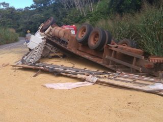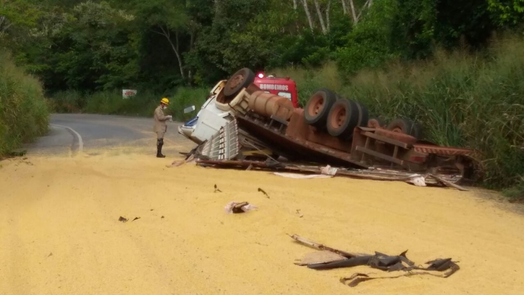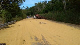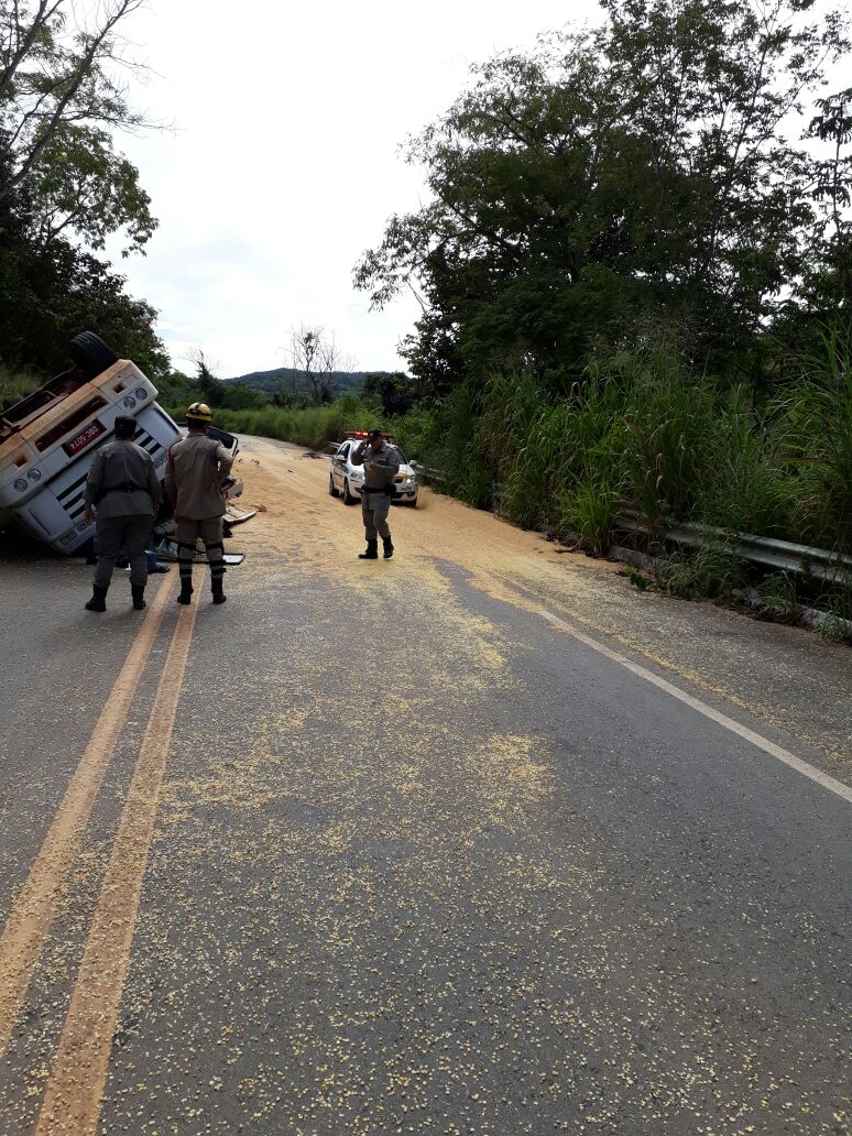 O 12º Batalhão Bombeiro Militar, da Cidade de Goiás, foi acionado nesta quinta-feira, 23, para socorrer o motorista de um caminhão que tombou, próximo a ponte do rio Vermelho, trecho entre Goiás e Faina. O caminhão, carregado com soja, obstruiu os dois sentidos da pista. Os bombeiros prestaram o atendimento pré-hospitalar ao motorista e o encaminharam ao Hospital São Pedro. Confira fotos:
