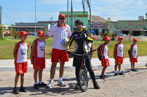 Bombeiros Mirins Anjos do Araguaia recepcionam os participantes do Comboio Ciclístico em Aruanã