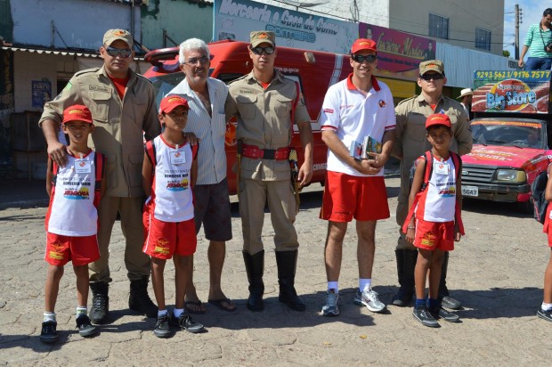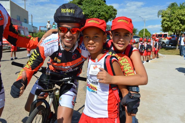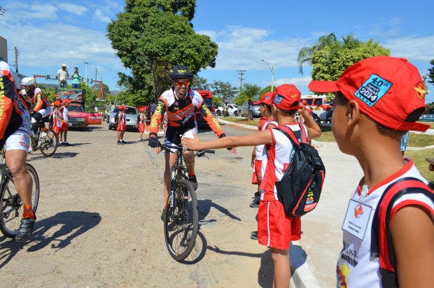 Os bombeiros mirins que fazem parte do projeto Anjos do Araguaia, projeto social desenvolvido pelo Corpo de Bombeiros durante a 40ª Operação Férias Turista Seguro, recepcionaram no sábado, dia 12, os participantes do Comboio Ciclístico em Aruanã e Faina. O Comboio partiu da cidade de Bela vista (GO) e percorreu 370 Km até o destino final, o belo Rio Araguaia. Os ciclistas foram recepcionados na cidade de Faina e na chegada a Aruanã às 17 horas. Antes de darem o tradicional mergulho nas águas do rio, pedalaram pelas principais ruas e avenidas acompanhados pelos Bombeiros Mirins Anjos do Araguaia, que os conduziram desde a entrada da cidade até o local da chegada, no Porto Principal.