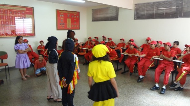 Grupos de teatro e musical infantis, que realizam trabalhos pela Secretaria da Educação, apresentaram na quinta-feira, dia 18, a peça Os Saltimbancos e várias danças artísticas. A apresentação foi no 4º BBM, de Rio Verde, e direcionada aos alunos do projeto Bombeiros Mirins. Foi um momento muito agradável e divertido para todas as crianças.