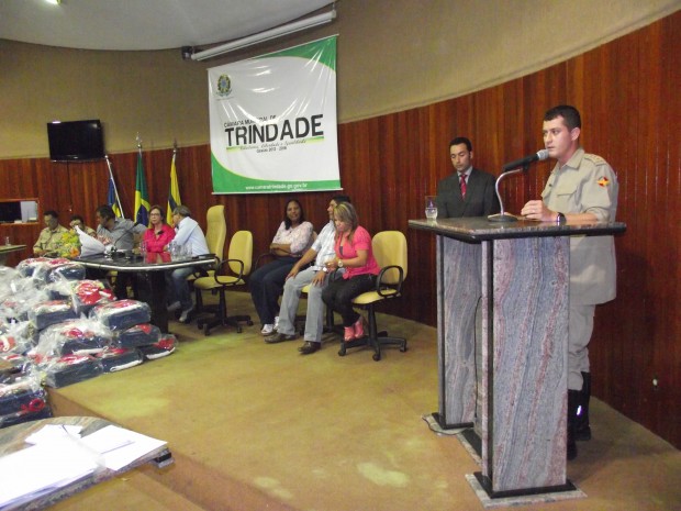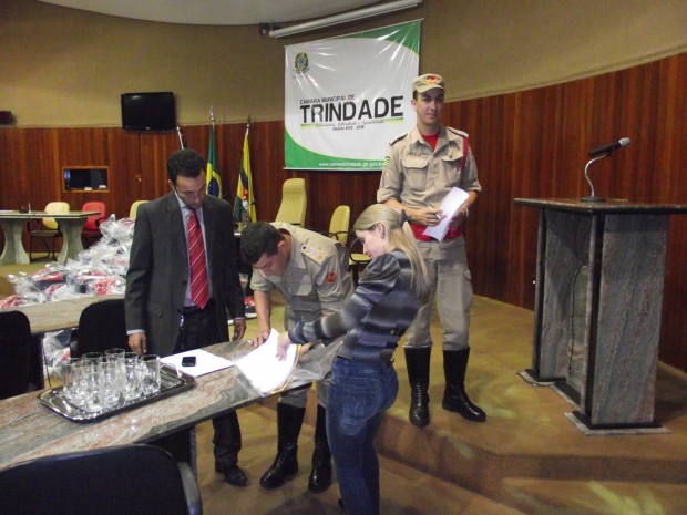 Foi realizado na quarta-feira, dia 26, a entrega do fardamento dos Bombeiros Mirins do PROEBOM de Trindade. A solenidade foi realizada na Câmara dos Vereadores e contou com a presença do Prefeito Jânio Darrot, a Primeira Dama, secretários, vereadores, o Comandante da 1ª CIBM, coordenadores do PROEBOM e demais militares.