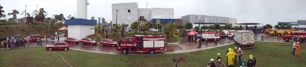 Bombeiros trabalham no combate a incêndio em indústria farmacêutica de Anápolis