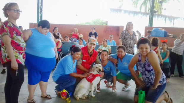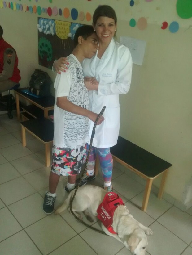 Cães de resgate do 1º BBM são utilizados durante terapia com pacientes do Instituto Pestalozzi