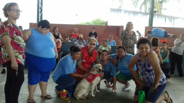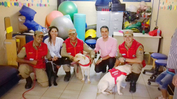 A equipe de Busca, Resgate e Salvamento com Cães do 1º Batalhão Bombeiro Militar visitou essa semana a Associação Pestalozzi de Goiânia, instituição filantrópica, sem fins lucrativos, que atende gratuitamente pessoas com Deficiência Intelectual e Transtornos Globais do Desenvolvimento (TGD) e suas famílias. Os cães de resgate foram utilizados em atividades de cinoterapia, uma abordagem terapêutica que tem como diferencial o uso de cães como co-terapeutas no tratamento físico, psíquico e emocional de pessoas com necessidades especiais.
