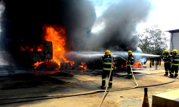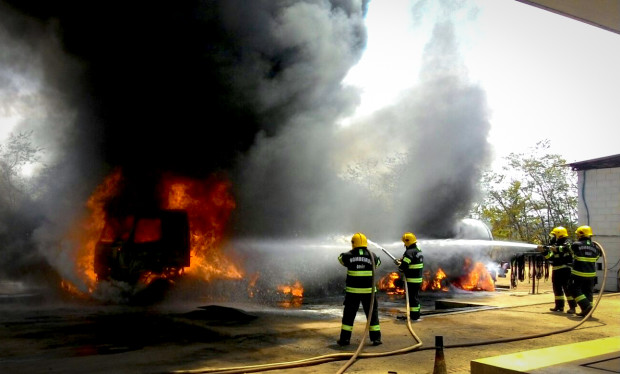 CBMGO atua em ocorrência de incêndio em duas carretas carregadas de cimento asfáltico