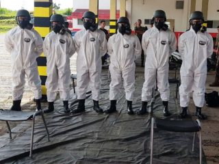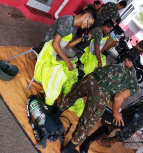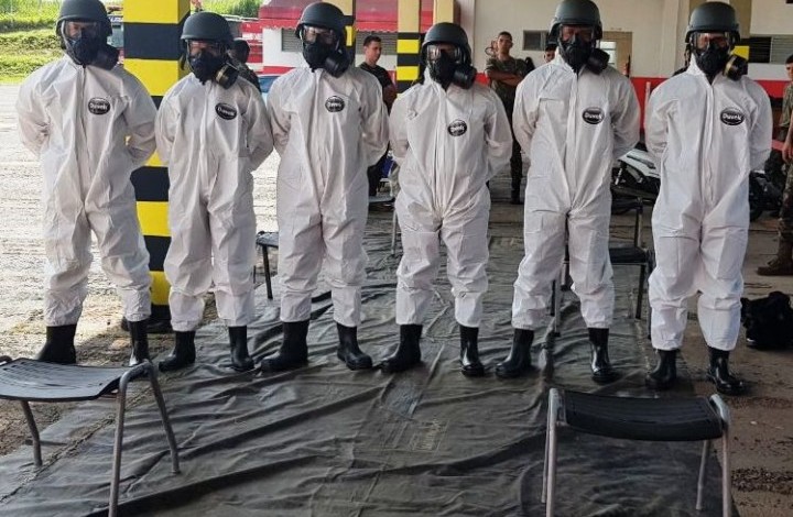 Foi realizado na semana passada um treinamento ministrado pelo Comando de Operações de Defesa Civil para a Companhia de Defesa Química, Biológica, Radiológica e Nuclear, do Exército Brasileiro. Houve no treinamento a parte teórica para discutir procedimentos e protocolos e no ultimo dia foi realizado a parte prática, quando foram executadas várias ações de resposta em um simulado em espaço confinado. O estágio foi coordenado pelo Capitão Wanderley Valério de Oliveira. O principal objetivo foi a integração entre as forças, no sentido de discussão de protocolos, melhores equipamentos, estratégias, técnicas e procedimentos para atendimento a sociedade, preservar o meio ambiente e o patrimônio em casos de emergência de natureza química, biológica e nuclear.