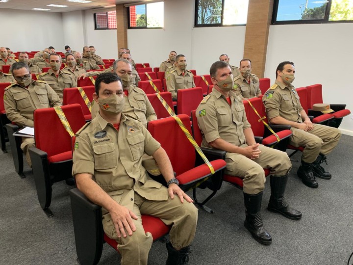O Comandante-Geral do @cbmgo, @comandantelemos, presidiu na manhã desta terça-feira, 8, a aula inaugural do Curso de Habilitação de Oficiais de Administração (CHOA/2021). A solenidade foi realizada no auditório do Comando-Geral, em Goiânia. O Subcomandante-Geral, Coronel Jailton, o Comandante da Academia e Ensino Bombeiro Militar, Coronel Glaydson, o presidente da Associação dos Subtenentes e Sargentos do Estado de Goiás, Subtenente Cláudio, e o Capelão Hudson Faria dos Santos também prestigiaram o evento. Ao todo, o curso tem 20 militares que vão receber conhecimentos que os habilitarão a desenvolver as funções inerentes ao cargo de oficial administrativo do CBMGO.