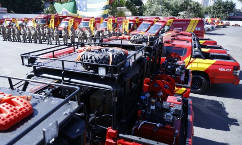 A solenidade oficializou a entrega de um conjunto diversificado de veículos, incluindo camionetes de salvamento, unidades de resgate pré-hospitalar, viaturas administrativas, caminhões de combate a incêndio e salvamento, veículos utilitários de combate a incêndio (UTV) e um posto de comando móvel. Além das viaturas, foram entregues equipamentos de mergulho, atendimento pré-hospitalar e salvamento em altura, ampliando ainda mais os recursos disponíveis para a corporação.