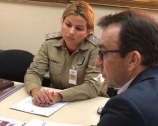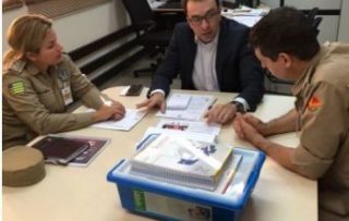 O Corpo de Bombeiros Militar do Estado de Goiás (CBMGO) se reuniu com o Centro de Apoio Operacional da Infância e Juventude do Ministério Público de Goiás para apresentar o Programa Educacional Bombeiro Mirim (Proebom). O Major Bruno e a Tenente Karla se reuniram com o promotor Publius Lentulus Alves da Rocha e a promotora Liana Antunes, do CAO Educação. O objetivo das entidades é trabalhar em prol de parcerias para a expansão e a atualização do programa social desenvolvido pelo CBMGO.