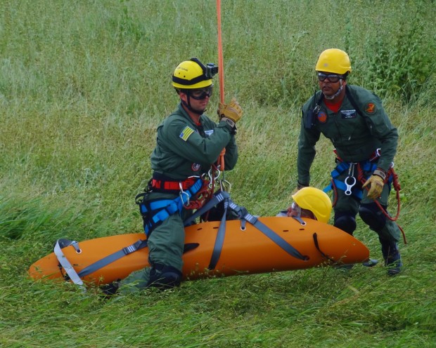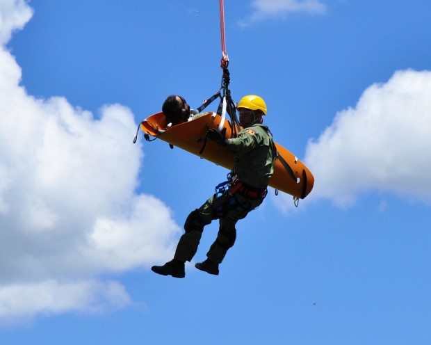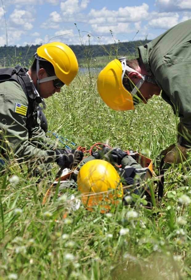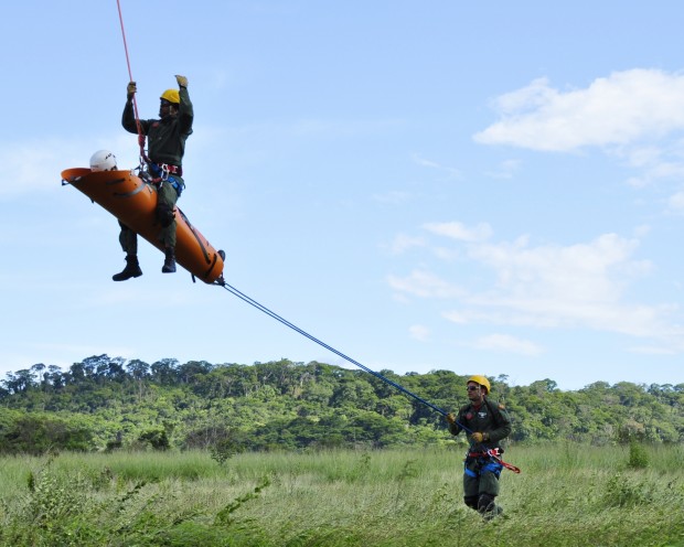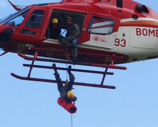 No treinamento foi utilizado a técnica de McGuire, que consiste no lançamento de dois tripulantes a partir do helicóptero no pairado, por meio de descida no rapel (infiltração), amarração e imobilização da vítima em maca de ribanceira, e posteriormente o içamento desta e do tripulante por meio do gancho da aeronave até um local mais adequado para o socorro.