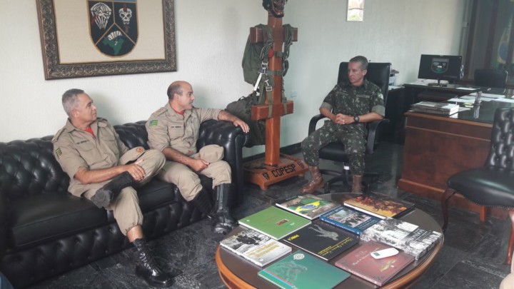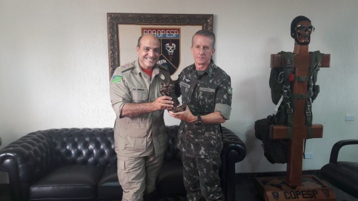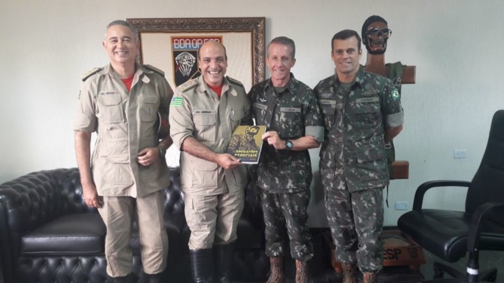 Na manhã desta quarta-feira, 18, o Comandante Geral do Corpo de Bombeiros Militar do Estado de Goiás(CBMGO), Coronel Márcio André de Morais, e o Subcomandante Geral, Coronel Sérgio Ribeiro Lopes, realizaram visita ao General de Brigada do Comando de Operações Especiais do Exército Brasileiro (COPESP) Sérgio Schwingel e ao Subcomandante de Operações Especiais, Coronel Durão. Na oportunidade, os Comandos do CBMGO e do COPESP realizaram alinhamento de ações conjuntas. Confira fotos: