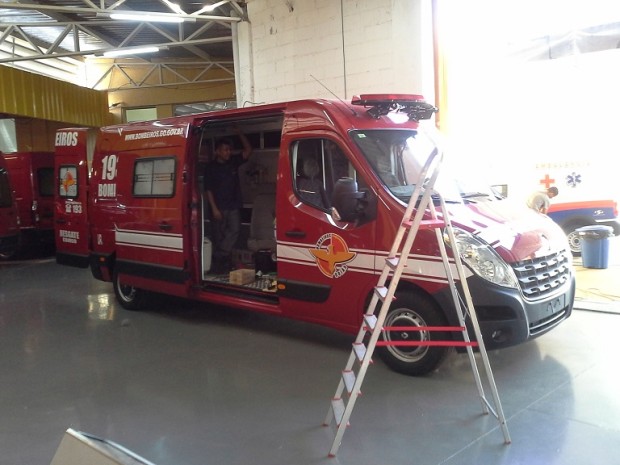 O Comandante Geral do Corpo de Bombeiros Militar do Estado de Goiás (CBMGO), Coronel Carlos Helbingen Júnior, e o Comandante de Apoio Logístico, Coronel Múcio Ferreira dos Santos, visitaram na terça-feira, dia 13, a empresa que trabalha na montagem das novas Unidades de Resgate (URs) da Corporação. Ao todo, o CBMGO, através de uma parceria com a Secretaria de Estado da Saúde (SES-GO), adquiriu 30 novas viaturas que serão distribuídas em todo o Estado. O objetivo é reforçar o trabalho desenvolvido pelos Bombeiros goianos de resgate pré-hospitalar, que hoje é referência no Brasil.