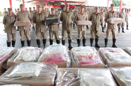 Foram entregues para cada Bombeiro Militar da unidade fardamento completo e uma balaclava, equipamento de proteção individual, utilizado para trabalhos que necessitem de proteção térmica da face e do pescoço empregadas no serviço operacional.
