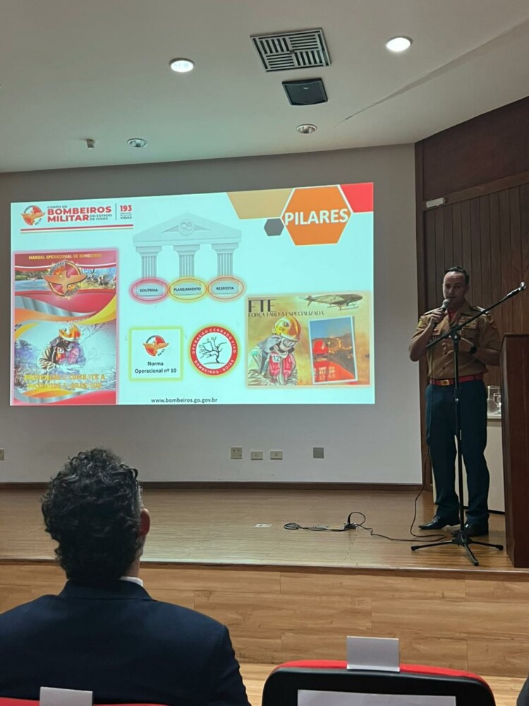 Em visita técnica ao Corpo de Bombeiros Militar Do Mato Grosso do Sul, o coronel Washington Luiz Vaz Júnior, comandante geral do CBMGO, teve a oportunidade de conhecer o Centro de Proteção Ambiental do CBMMS, onde pode ver de perto a realidade da nossa coirmã, seus equipamentos e viaturas específicas de combate a incêndio em vegetação e estrutura destinada à Proteção Ambiental. Além de participar como palestrante na abertura do Encontro do Sistema Brasileiro de Inteligência (SISBIN) no Centro-Oeste, sobre Políticas Públicas Regionais no Enfrentamento das Mudanças Climáticas. Evento organizado pela ABIN (Agência Brasileira de Inteligência) nesta quinta-feira, 23 de novembro, em Campo Grande/MS, com a presença dos Comandantes Gerais da região Centro-Oeste para debater políticas diante das mudanças climáticas.