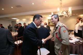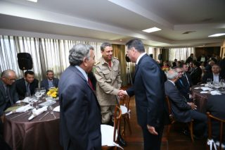 O Comandante-Geral do Corpo de Bombeiros Militar do Estado de Goiás (CBMGO), Coronel Carlos Helbingen Júnior, e o Subcomandante-Geral, Coronel Edmilson Eurípedes Lopes, participaram na tarde desta quarta-feira, 3, de um encontro promovido pelo governador Marconi Perillo, no Palácio das Esmeraldas. O evento homenageou os bispos Abigail Carlos de Almeida ( Assembleia de Deus – Ministério Fama) e Oídes José do Carmo (Assembleia de Deus – Ministério Madureira), ordenados recentemente. Diversas autoridades civis, militares e eclesiásticas estiveram presentes na homenagem. Confira fotos: