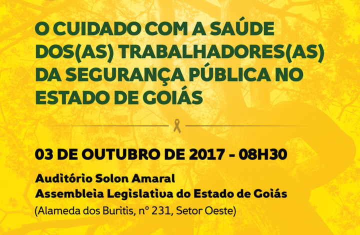 A Comissão de Segurança Pública da Assembleia Legislativa do Estado de Goiás (Alego) realizará Audiência Pública para discutir O Cuidado com a Saúde dos Trabalhadores da Segurança Pública no Estado de Goiás. O evento será realizado na terça-feira, 3 de outubro de 2017, às 08h30, no Auditório Solon Amaral da Assembleia Legislativa do Estado de Goiás. Mais informações: 3221-3042.