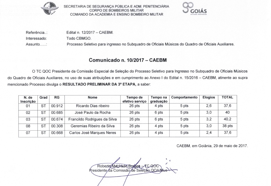 A Comissão de Seleção do Quadro de Oficiais Auxiliares/ Músicos divulga nesta segunda-feira, 29, o Comunicado n. 10/2017.