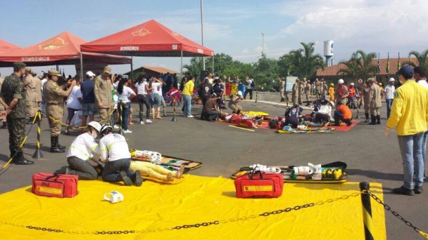 Com o objetivo de promover a capacitação e treinamento técnico operacional de seu efetivo, o Corpo de Bombeiros Militar do Estado de Goiás (CBMGO) realizou na manhã deste sábado, dia 23, a partir das 9 horas, um simulado no Porto Seco Centro-Oeste de Anápolis. A ação foi coordenada pelo 3º Batalhão Bombeiro Militar e teve o objetivo de fortalecer a integração entre as várias empresas instaladas no local e o Plano de Auxílio Mútuo (PAM). Participaram do evento, além do Corpo de Bombeiros Militar, a Polícia Militar, a Polícia Rodoviária Federal, o Samu e as empresas do Distrito Agro Industrial de Anápolis. Confira as fotos: