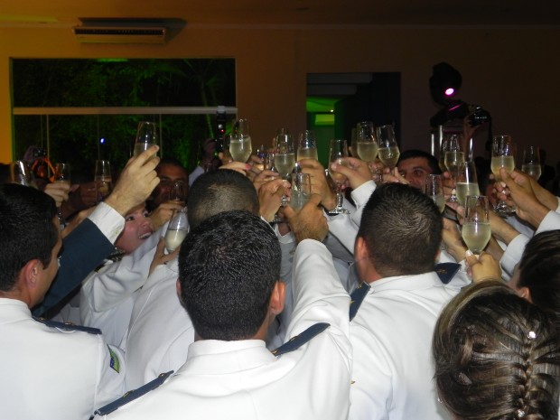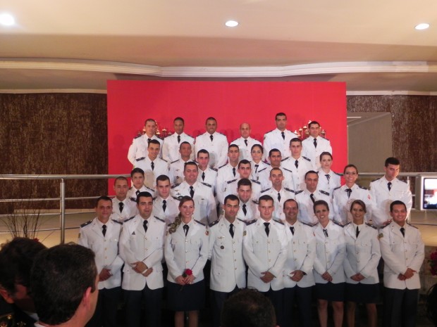 A turma com 33 formandos, brindaram em comemoração ao término do curso e a conquista do aspirantado. Logo em seguida, o Comandante Geral e sua esposa dançaram com os novos aspirantes  a Tradicional Valsa de formatura. No baile,  os aspirantes abriram a pista de dança com  enfeites de bombeiros, convidando todos os presentes para participarem da dança.  Confira as fotos:
