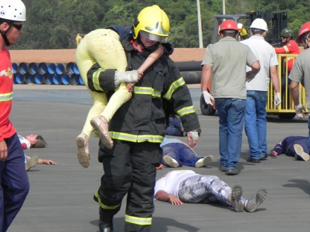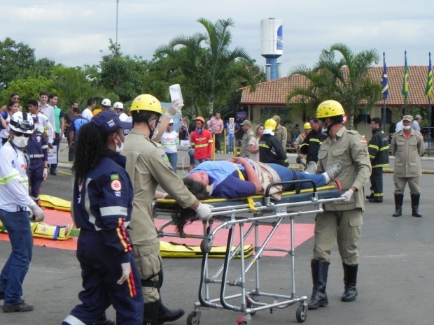 Com o objetivo de promover a capacitação e treinamento técnico operacional de seu efetivo, o Corpo de Bombeiros Militar do Estado de Goiás (CBMGO) realizou na manhã deste sábado, dia 23, a partir das 9 horas, um simulado no Porto Seco Centro-Oeste de Anápolis. A ação foi coordenada pelo 3º Batalhão Bombeiro Militar e teve o objetivo de fortalecer a integração entre as várias empresas instaladas no local e o Plano de Auxílio Mútuo (PAM). Participaram do evento, além do Corpo de Bombeiros Militar, a Polícia Militar, a Polícia Rodoviária Federal, o Samu e as empresas do Distrito Agro Industrial de Anápolis. Confira a galeria de fotos do evento: