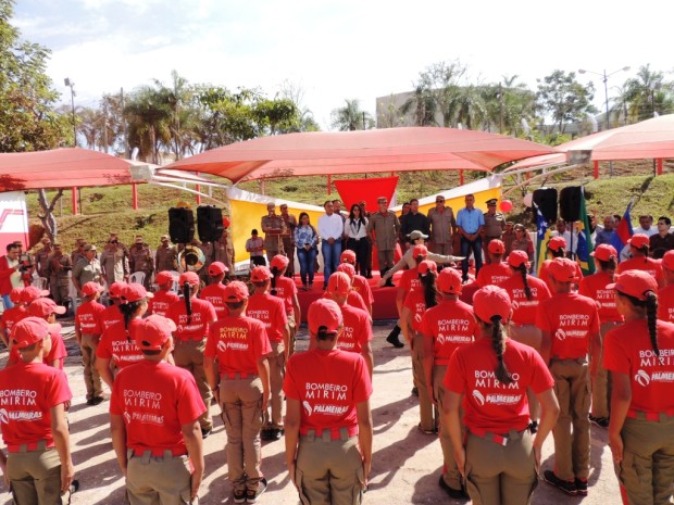 Confira fotos da entrega de viatura e equipamentos, formatura de bombeiros mirins e ampliação do quartel em Palmeiras de Goiás