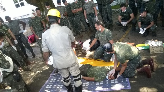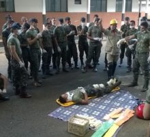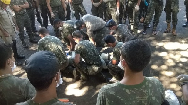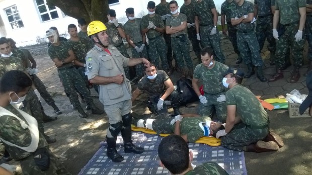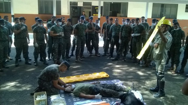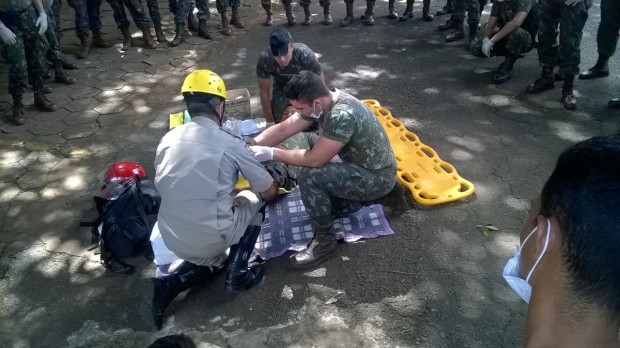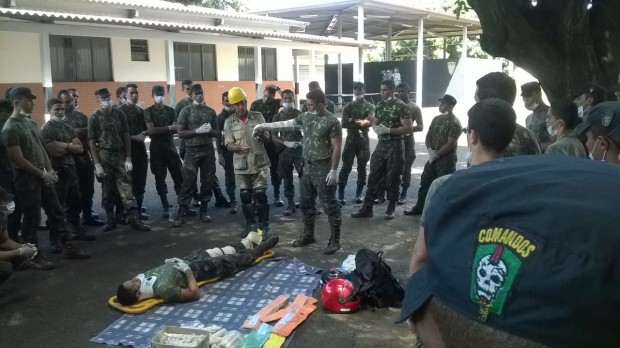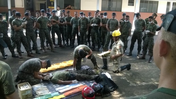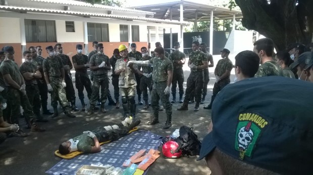 Nesta semana o BSE também ministrou instrução para cerca de 80 militares do Exercito Brasileiro, de diversas graduações, que irão apoiar a organização das Olimpíadas Rio 2016. A instrução foi realizada no 1º Batalhão de Ações de Comando – 1ºBAC e foram abordados temas como Avaliação primária, Estado de Choque, Reanimação cardiopulmonar, Hemorragias, Ferimentos por armas de fogo, arma branca, explosões e queimaduras. Confira fotos: