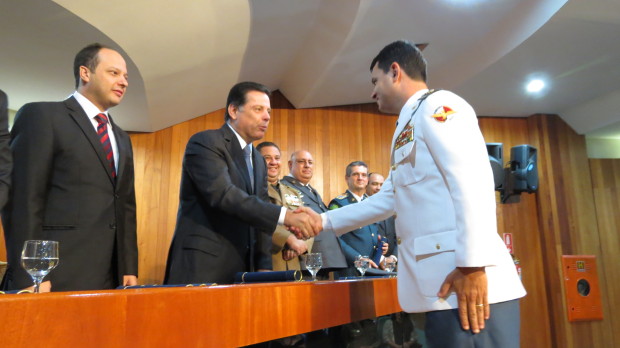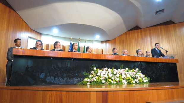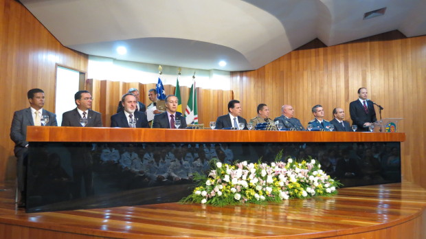 A Secretaria de Segurança Pública e a Universidade Estadual de Goiás (UEG) realizaram na noite de terça-feira, dia 10, a solenidade de formatura do Curso de Pós-Graduação em Altos Estudos de Segurança Pública (Caesp). A formatura dos 48 profissionais de segurança, entre eles cinco oficiais superiores do Corpo de Bombeiros Militar do Estado de Goiás (CBMGO), foi realizada no auditório da Associação dos Magistrados do Estado de Goiás (Asmego). A solenidade contou com a presença de diversas autoridades como o governador Marconi Perillo e o Comandante Geral do CBMGO, Coronel Carlos Helbingen Júnior.