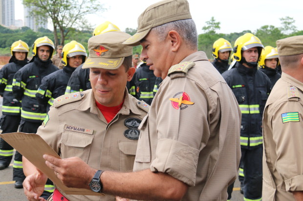 Foi realizada na manhã desta quinta-feira, 10, a formatura do Estágio de Combate a Incêndio – Flashover 2015. A solenidade, presidida pelo Subcomandante-Geral do Corpo de Bombeiros Militar do Estado de Goiás (CBMGO), Coronel Divino Aparecido de Melo, aconteceu no pátio do Comando da Academia e Ensino Bombeiro Militar (CAEBM). O estágio teve como objetivo recapacitar bombeiros militares na área de combate a incêndio.