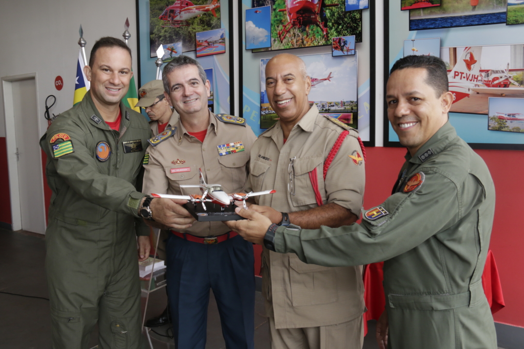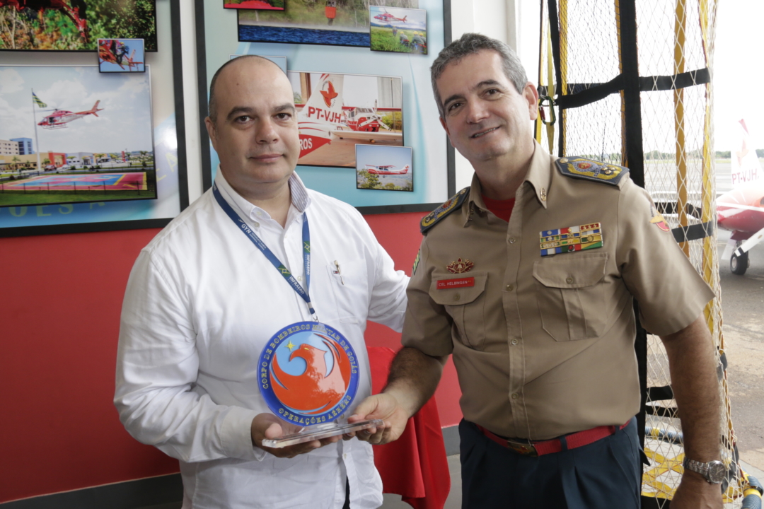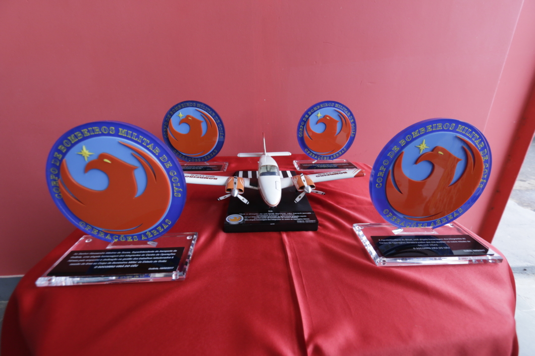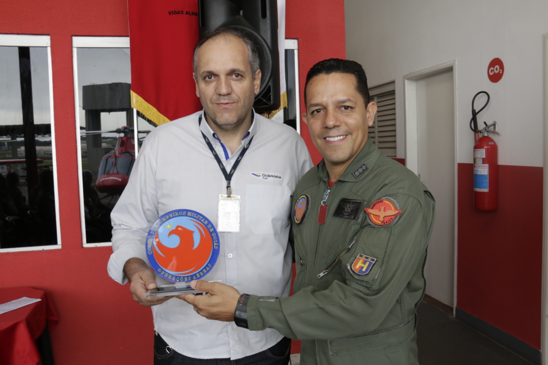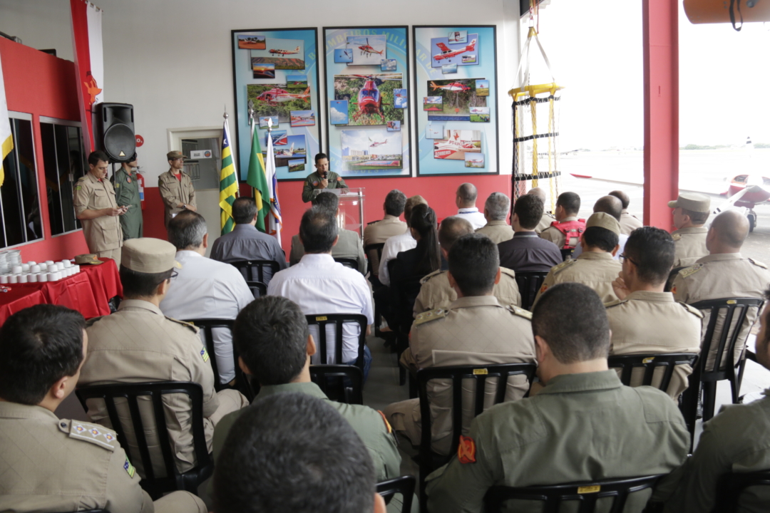 Foram inauguradas na manhã desta quarta-feira, 8, as novas instalações do Centro de Operações Aéreas (COA) do Corpo de Bombeiros Militar do Estado de Goiás (CBMGO). A solenidade foi presidida pelo Comandante-Geral do CBMGO, Coronel Carlos Helbingen Júnior, e contou com as presenças do Subcomandante-Geral do CBMGO, Coronel Divino Aparecido de Melo, e do superintendente do Aeroporto de Goiânia, Alessandro Máximo de Sousa. A nova estrutura física do COA vai otimizar o trabalho realizado pelos bombeiros, entre eles o suporte avançado prestado por aeronaves como o Helicóptero Bombeiro 01. Durante o ato, além do Coronel Aparecido e do superintendente do Aeroporto, foram homenageados autoridades que colaboraram com o fortalecimento do Comando. Entre elas, o gerente de segurança do aeroporto, Eduardo Luís Barduco, o representante da Centro-Oeste Manutenção de Aeronaves, Evimar Antônio da Silva, e o representante da Goiás Aviation, Edilson Matos, e o superintendente do Serviço Aéreo do Estado de Goiás, Deocleciano Aguiar de Farias.