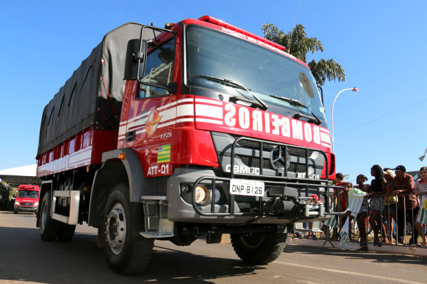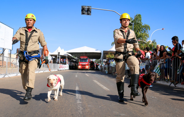 Na manhã desta quarta-feira, 11, o Corpo de Bombeiros Militar do Estado de Goiás participou do desfile de aniversário de 94 anos de Aparecida de Goiânia. A cidade é sede do 7º Batalhão Bombeiro Militar. Os pelotões foram formados por bombeiros especialistas em combate a incêndio florestal, combate a incêndio urbano, busca e salvamento com cães de resgate, além da Banda Sinfônica do CBMGO. A população local prestigiou o evento e aplaudiu a passagem dos Bombeiros no desfile cívico-militar. Confira fotos: