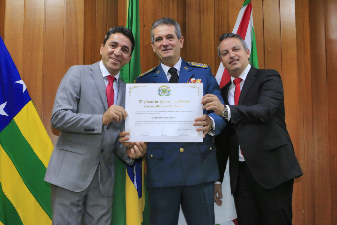 A Câmara Municipal de Goiânia promoveu na noite de terça-feira, 27, uma sessão especial em homenagem ao Corpo de Bombeiros Militar do Estado de Goiás (CBMGO). A iniciativa foi dos vereadores Cabo Senna e Gustavo Cruvinel. O Comandante Geral do CBMGO, Coronel Carlos Helbingen Júnior, oficiais e praças da Corporação prestigiaram a solenidade.